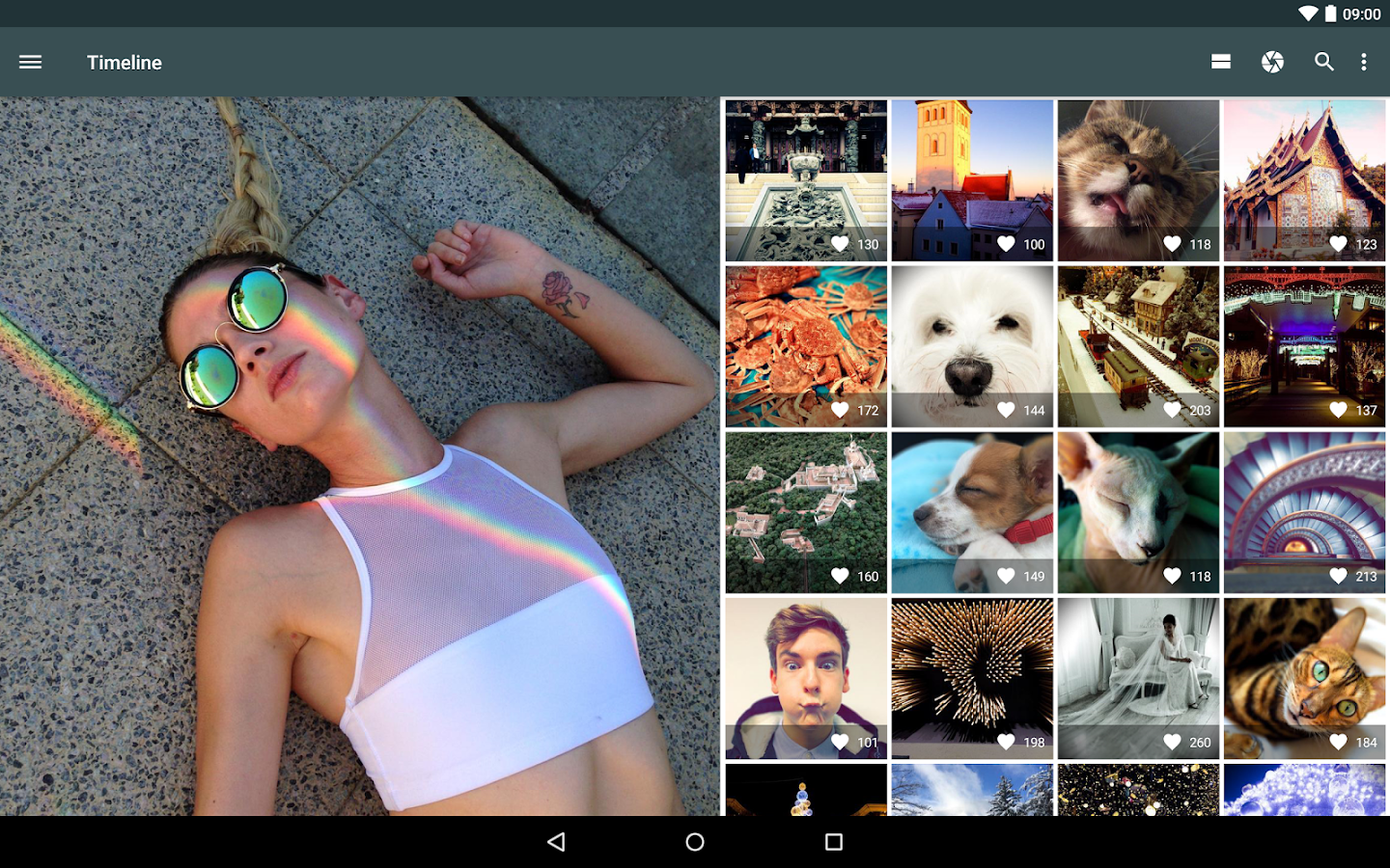 En la barra superior encontraremos opciones como la cámara, la disposición de las fotos y el buscador. Y en el menú de la izquierda podremos dirigirnos al Timeline, Explorar, Popular o ir a nuestro perfil.