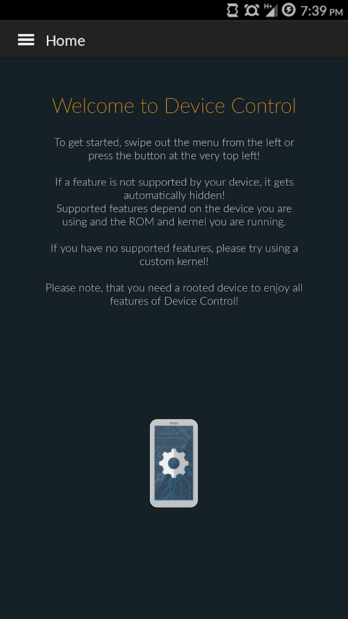 En tercer lugar nos encontramos con Device Control, una aplicación para controlar varias funciones del dispositivo, así como algunas características extras agradables como un administrador de Tasker, App, Editores, Entropía Generator, Filemanager Wireless y más.