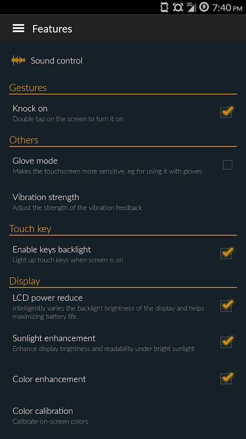 - La fuerza de la vibración, temperatura de color de la pantalla, poder reducir LCD, etc.