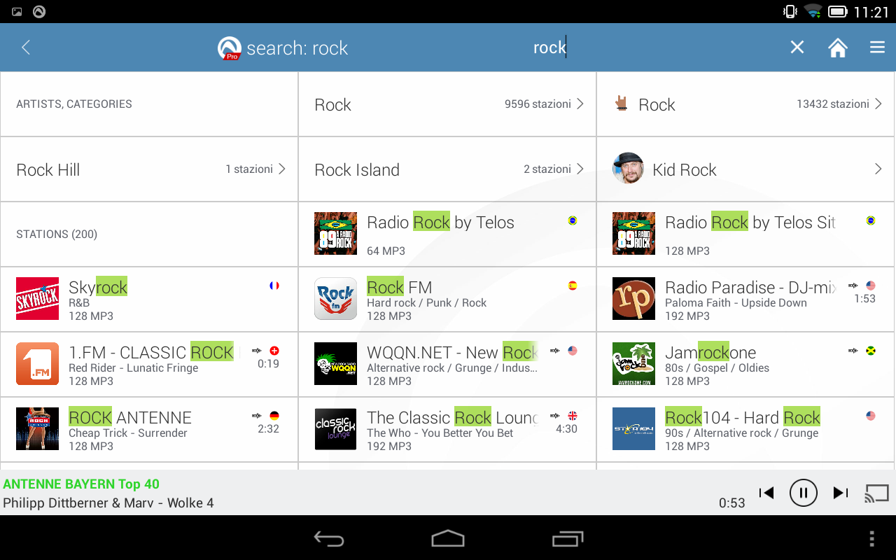 ¡Atención! Esta función está disponible solamente en la versión Pro: escribe simplemente el nombre de un artista y la aplicación empezará a buscar emisoras compatibles por la exclusiva red de Audials Radio para recortar de forma automática las pistas de quien hayas indicado. Audials Pro guarda automáticamente las pistas recortadas en tu smartphone o tablet en formato MP3, con etiquetas ID3 y la portada del álbum.