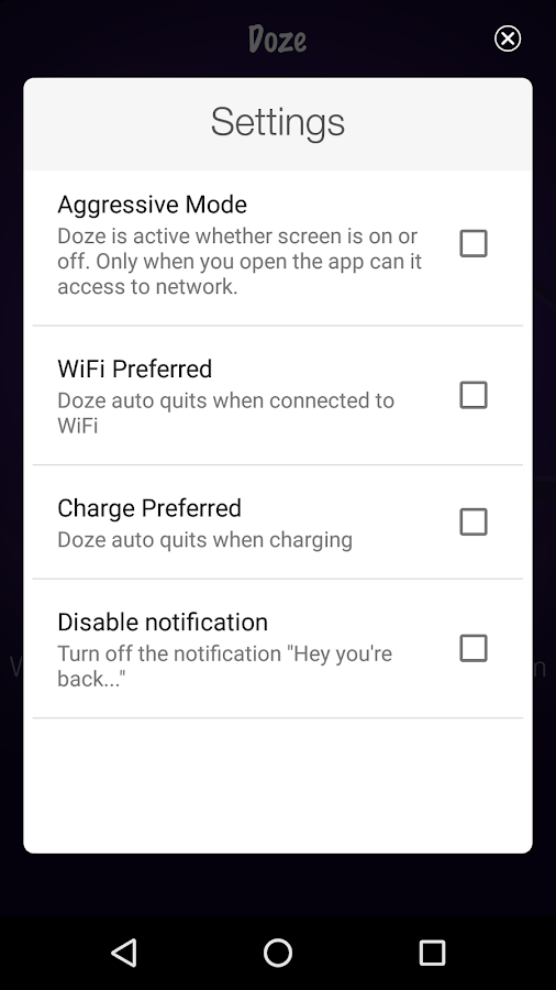 Puede activar Doze de YirgaLab cualquier momento. Por el contrario, es mucho más fácil de activar.