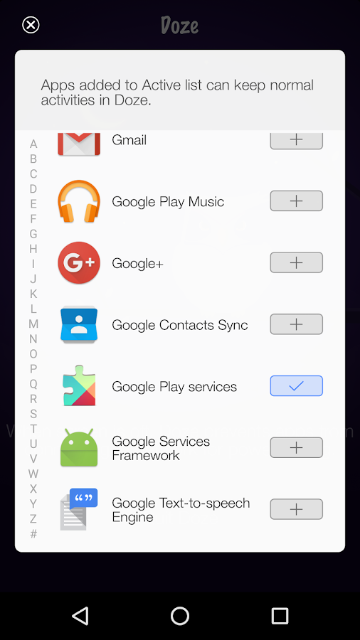 En la reciente actualización, los desarrolladores han añadido una característica de lista activa. Las aplicaciones añadidas a la lista activa están activas en el modo de Doze.